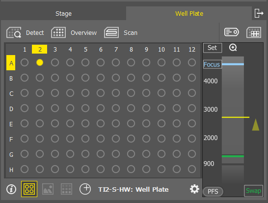 Find the well plate navigator on the left. Ensure that the correct plate holder is listed on the bottom. If not, click on the gear icon so select the correct one.