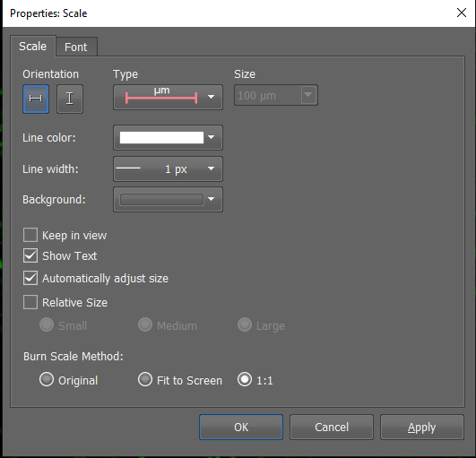 You can add a scale bar by clicking on the scale bar icon under the tabs. Right click on the scale bar itself to edit the settings.